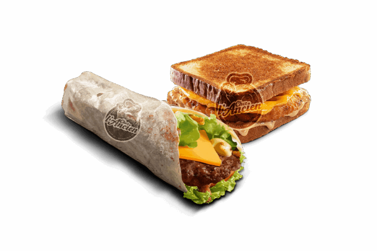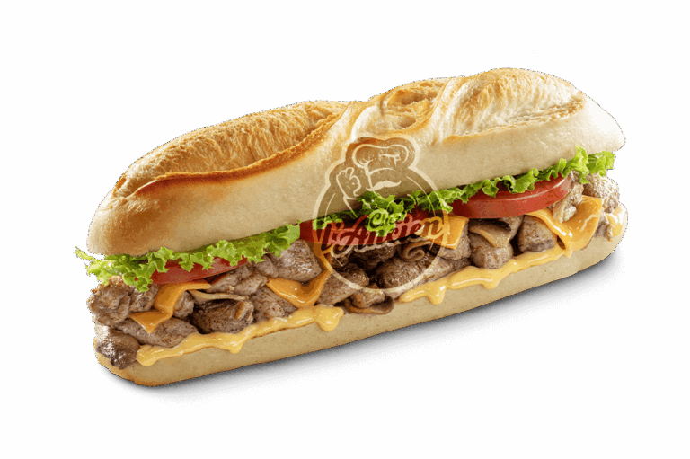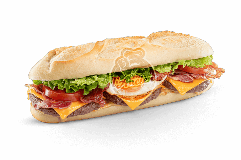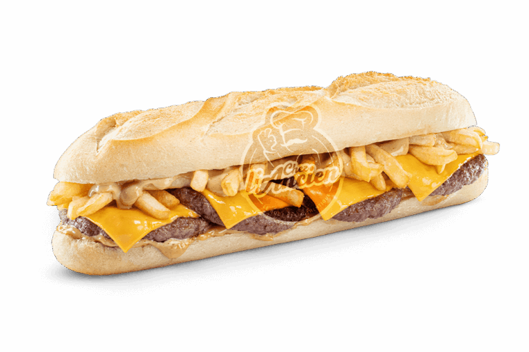Omelette, crudités au choix, frites dans le sandwich, cheddar, sauce au choix