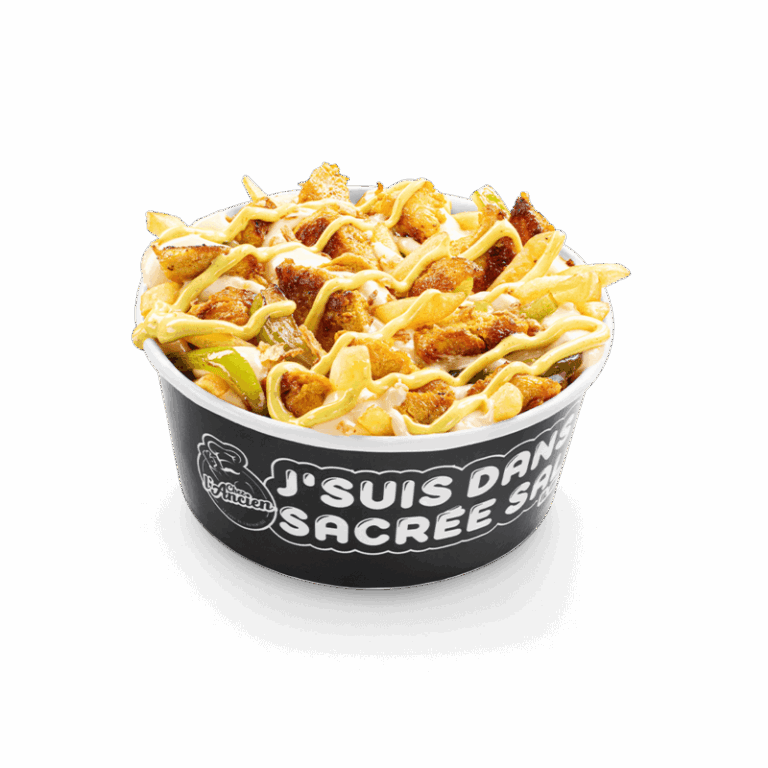 Poulet tandoori à la crème, crudités au choix, cheddar, sauce au choix