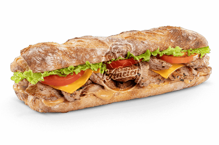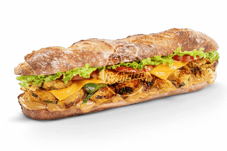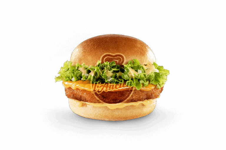 Escalope de poulet panée, salade, cheddar, oignons blanc, sauce spéciale chicken